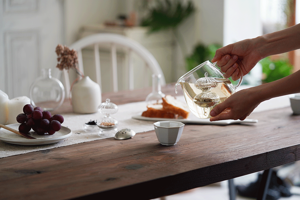 浮雲醇茶器,錫製的底座,能讓茶的口感變得滑順甘甜,口吹玻璃的自然紋路,透過光影的折射,清澈剔透。錫,在英國,德國,日本,都曾被拿來製成皇室的御用器具。WOO Collective 經過不斷的實驗與科學驗證,我們深入瞭解:錫可以有效殺菌,淨化水質,還能讓茶水不容易變得苦澀。