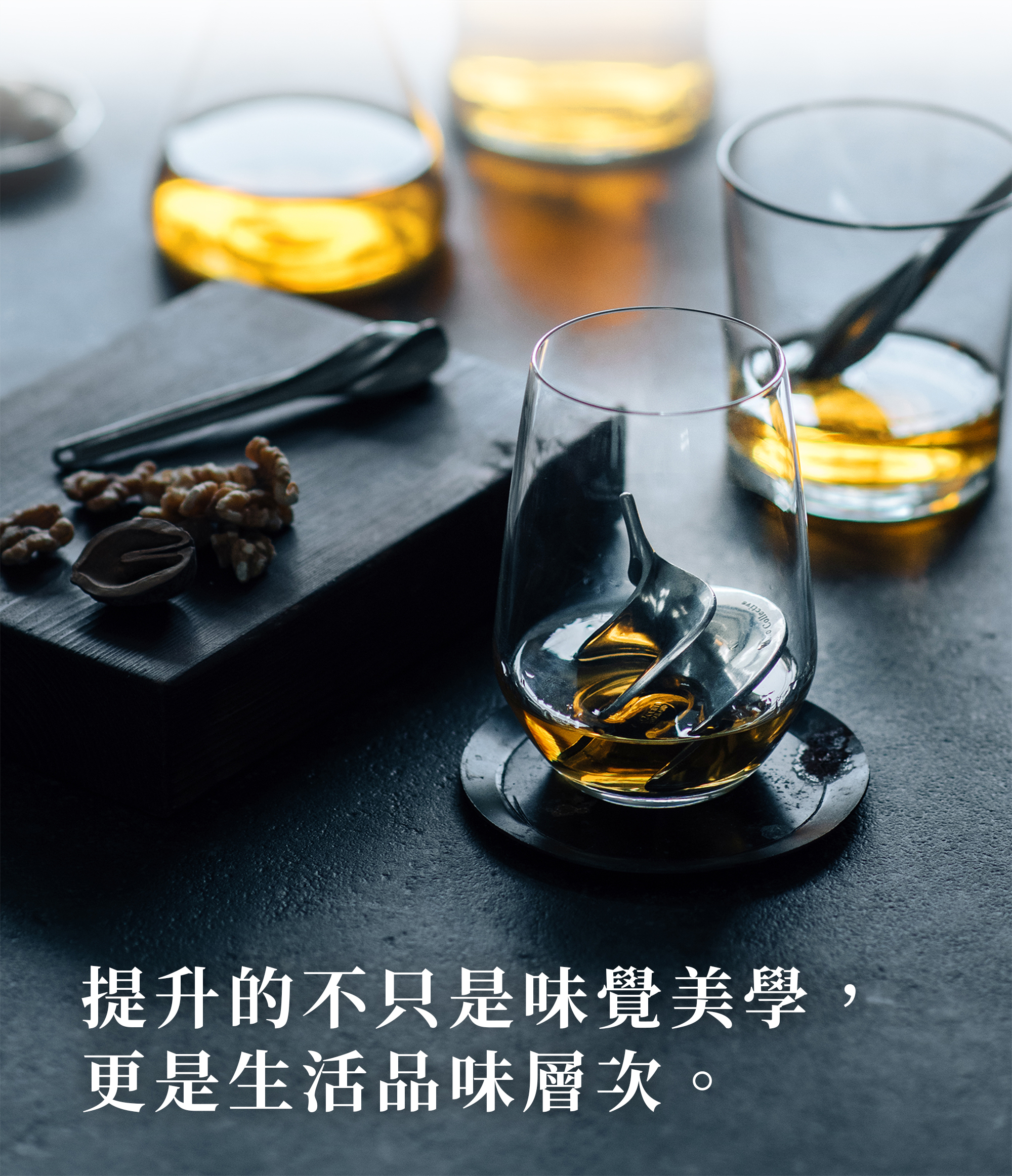 冰岩系列為多切面設計,底部接觸面積較多,為威士忌、烈酒專用,可於短時間去除烈酒辛辣口感。