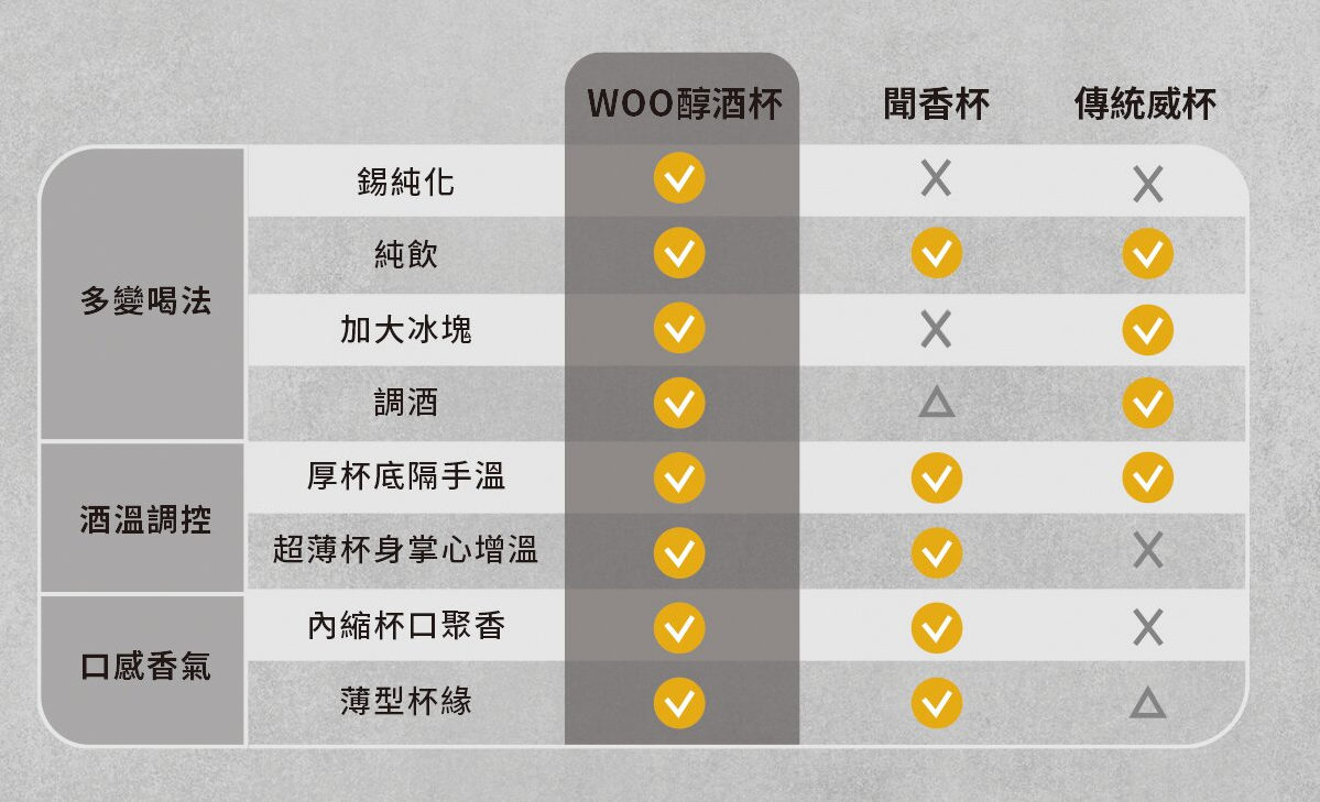 結合各種杯型優點,成就WOO醇酒杯!