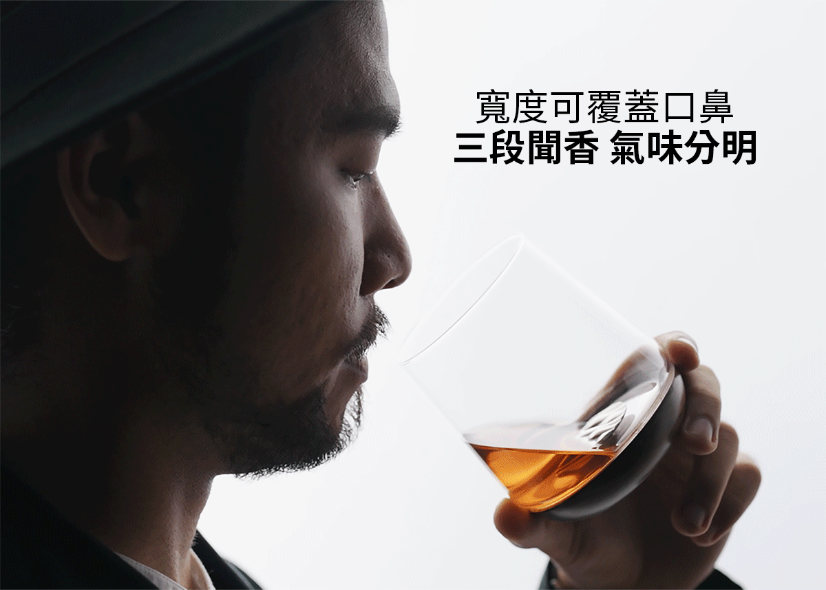 調酒師建議品烈酒時,會從杯口的上方聞到到下方。上方會是最輕盈的香氣,下方則是較深層的、香料感比較重。原因是香氣分子會有輕重之分,所以從輕盈的上方、中段、下方這個順序嗅聞,可以更完整的了解一支酒的香氣表現。