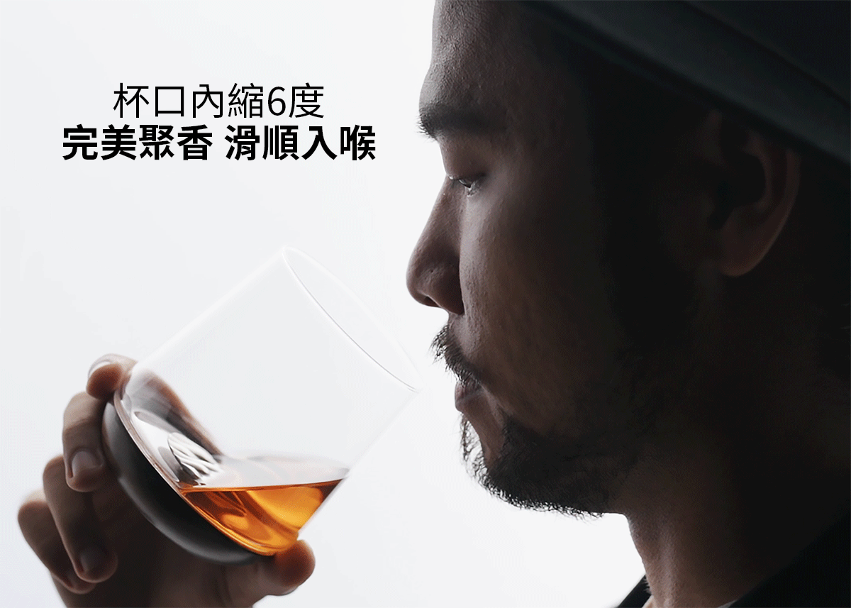 經過多次實驗測試,杯口內縮6度,可以達成優秀的聚香效果,並且讓酒液更完美的流入口腔,達成最佳品飲杯型。適度的寬口,可同時覆蓋口鼻,香氣與酒液同時品味。