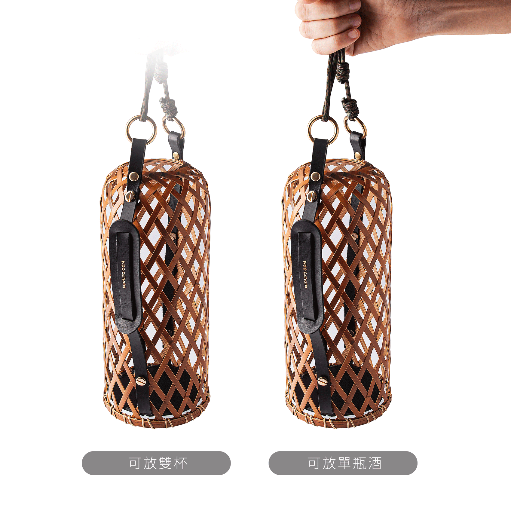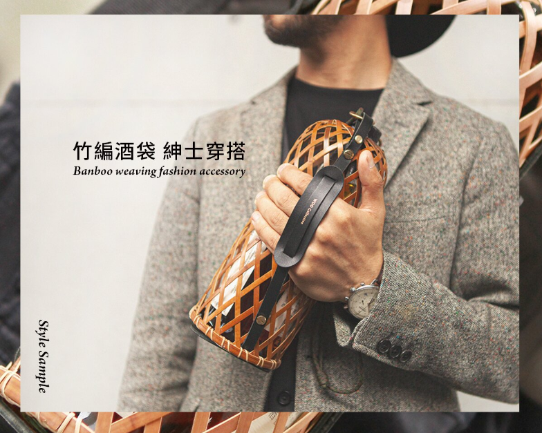 竹山手工編織竹藝拼接皮革與登山繩,可肩背、可手提,可當酒袋、雙杯組便攜袋,是獨具一格的禮盒,更是獨樹一幟的風格背袋!竹編酒袋上方簍空,讓酒瓶頸穿過,可適用多種尺寸酒瓶。
