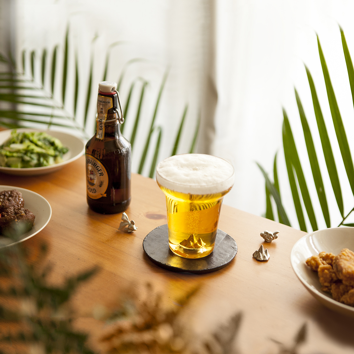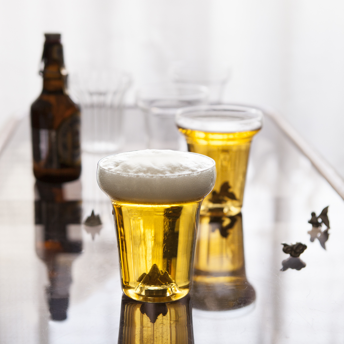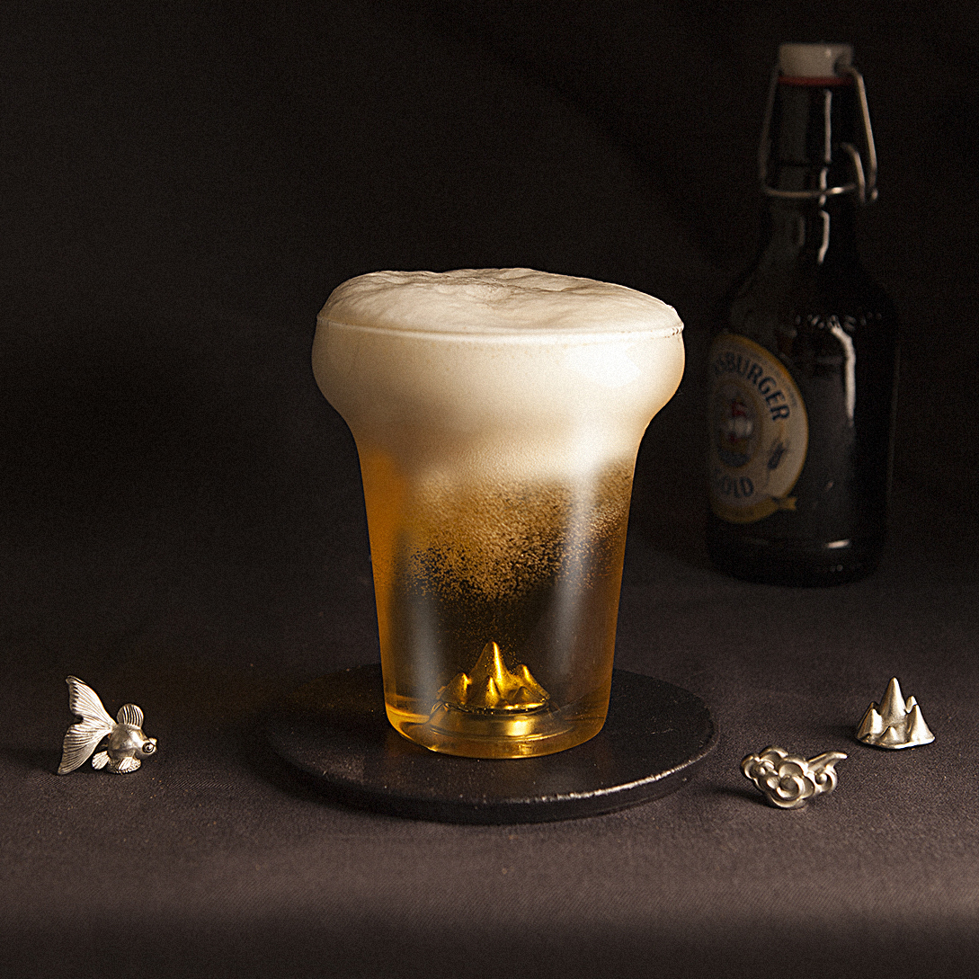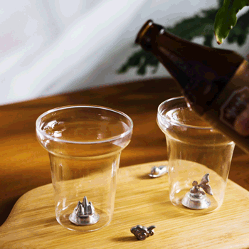 經過 1 年多的反覆設計、打樣、實驗,打破百年來錫製酒杯的傳統印象,挑戰當代最有事酒杯!玻璃杯底的獨特設計,加上專利引力結構,可以在玻璃杯內,吸附各種造型的錫製公仔,360 度旋轉倒置都能緊緊相吸不脫離,玻璃杯內沒有任何固定結構,寬大杯口方便清潔。