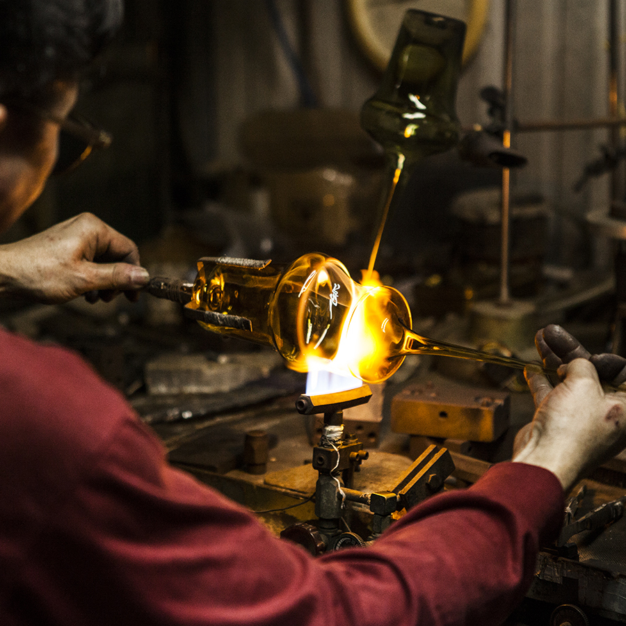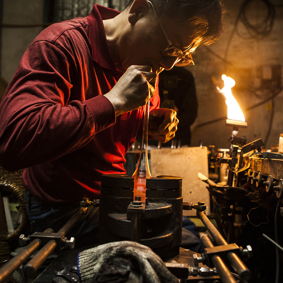 台灣新竹的玻璃工藝逾百年歷史,然而受到 1973 年石油危機的衝擊,直至 1986 年為止,工廠外移中國、東南亞,人才流失,造成玻璃產業成為夕陽工業。花費許久時日,我們才找到擁有 30 年經驗的口吹玻璃職人師傅,願意與我們一同開發製造。